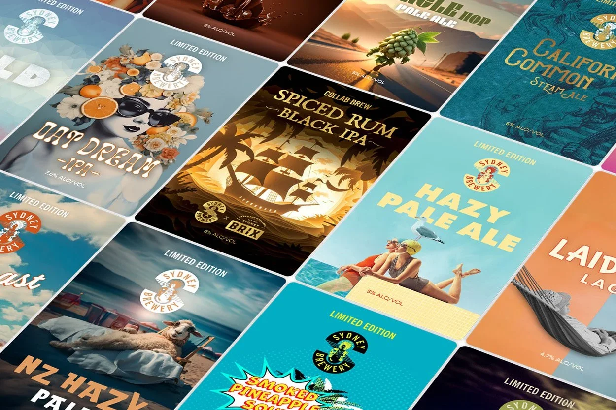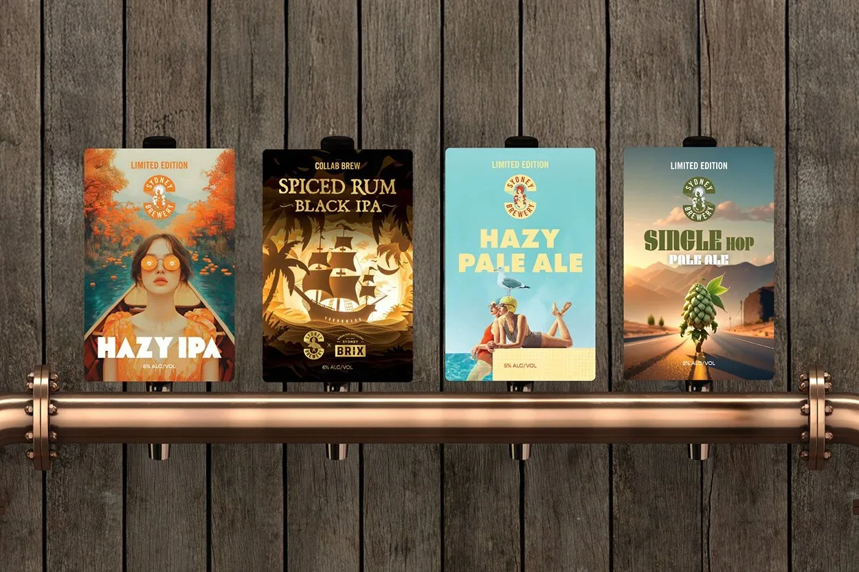 As part of an ongoing collaboration with Sydney Brewery, limited-edition tap decals are released weekly for small-batch, experimental beers.